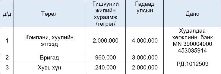 o   Тус холбооны гишүүний жилийн хураамжийг доорхи төрлийн дагуу төлсөн баримт: